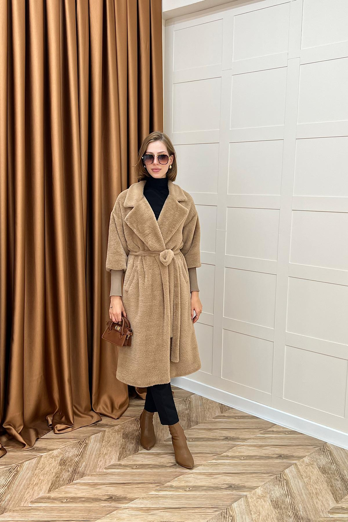 Angora Premium Kumaş Kaban Vizon (5519-VIZON)