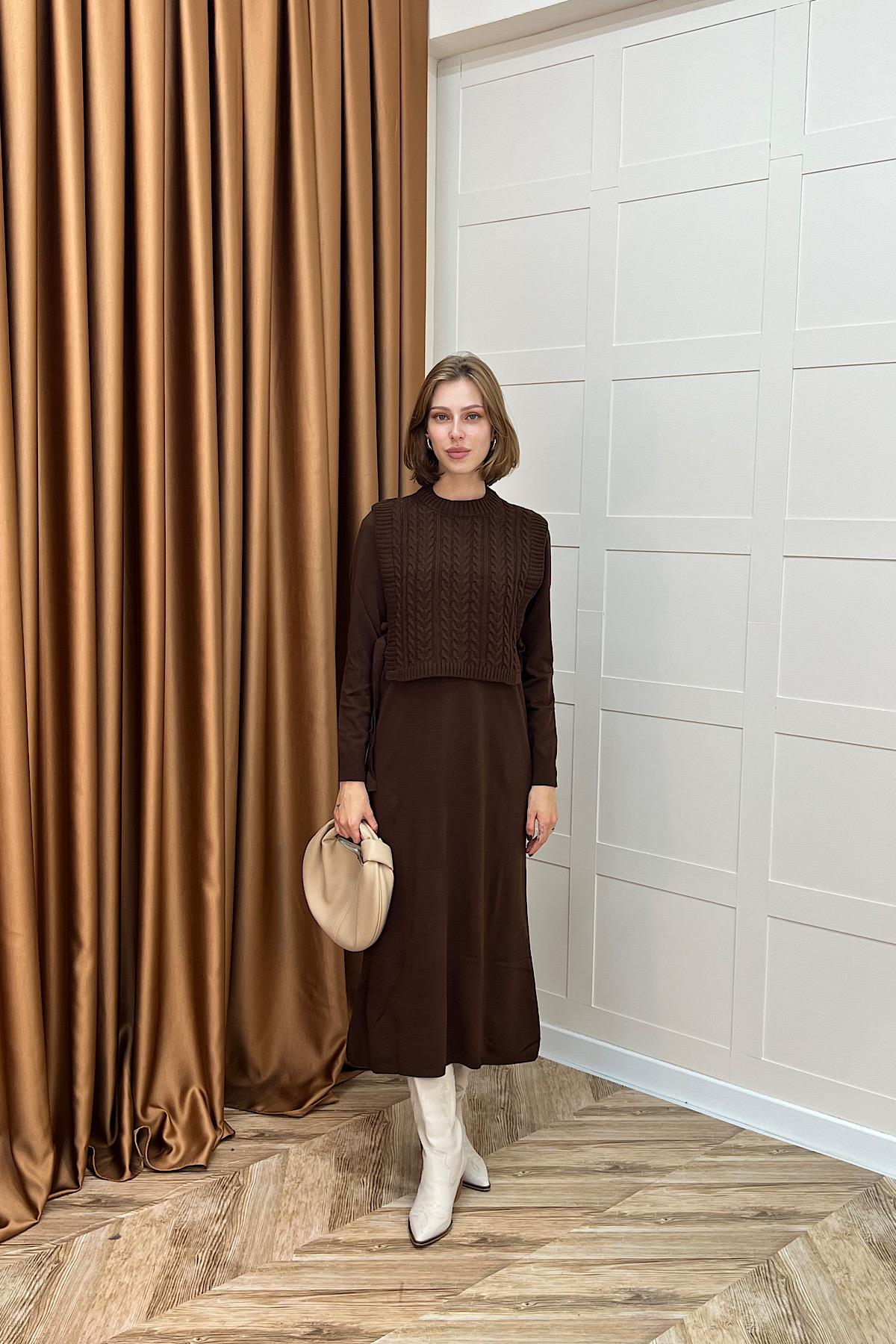 Barles İkili Triko Elbise Kahverengi (25220-KAHVERENGI)