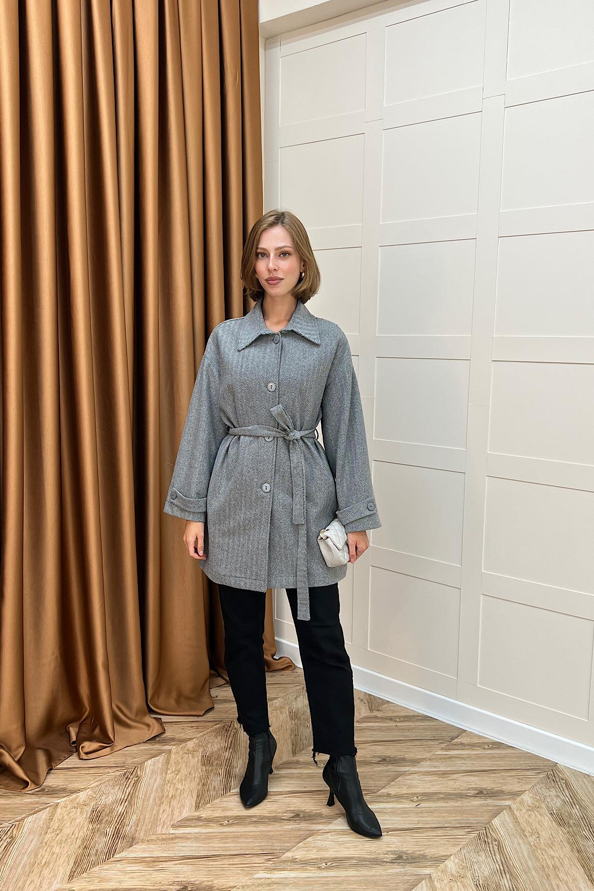 Bensu Kuşaklı Kaşe Kaban Gri (5518-GRI)
