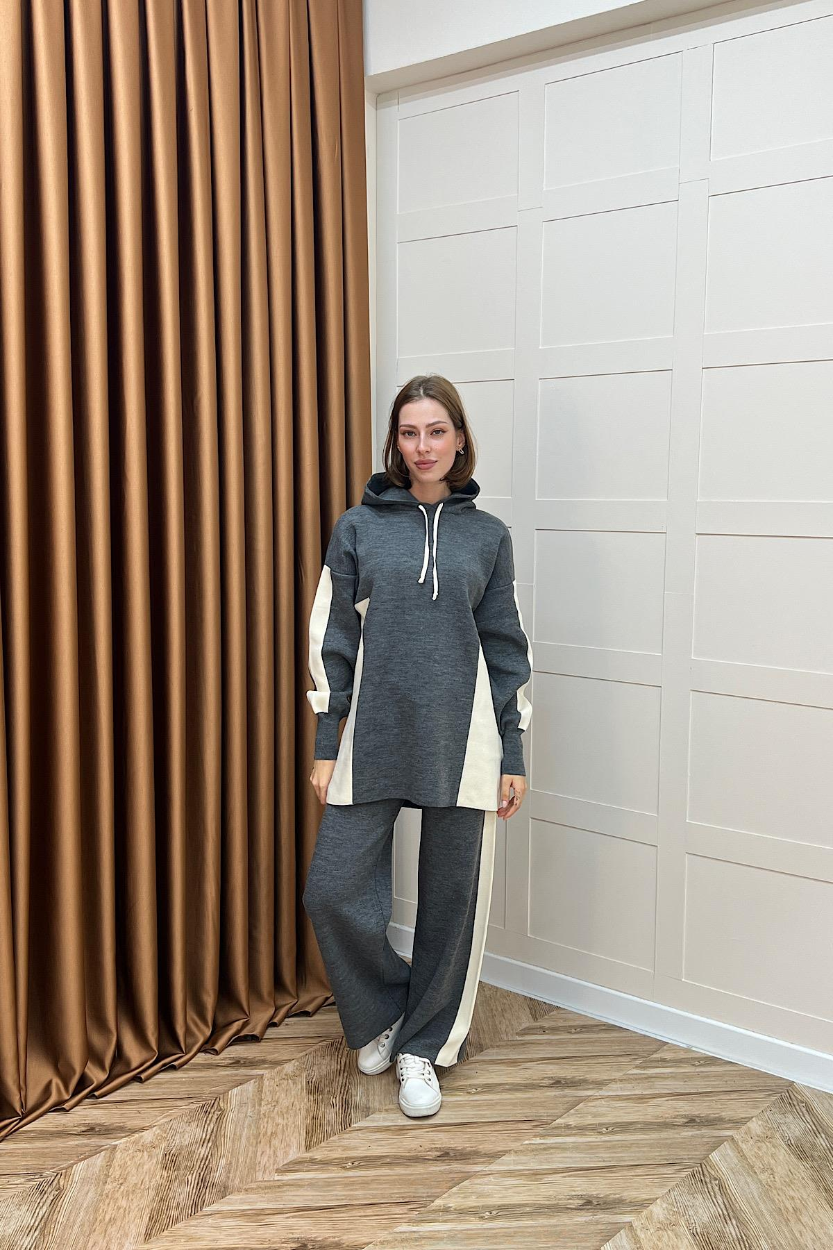 Lapis Çizgili Kapüşonlu Triko Takım Antrasit (241210-ANTRASIT)