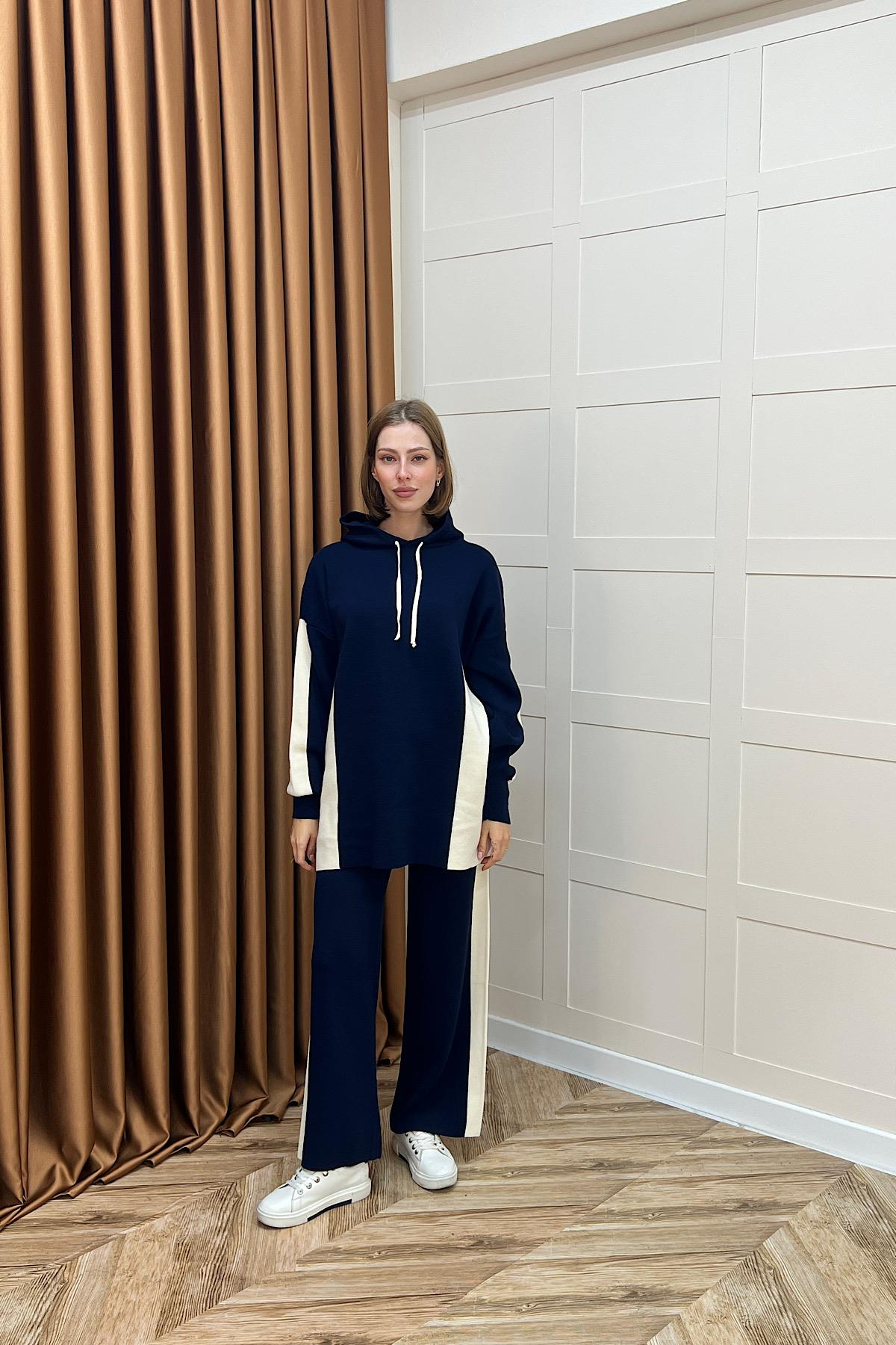 Lapis Çizgili Kapüşonlu Triko Takım Lacivert (241210-LACIVERT)