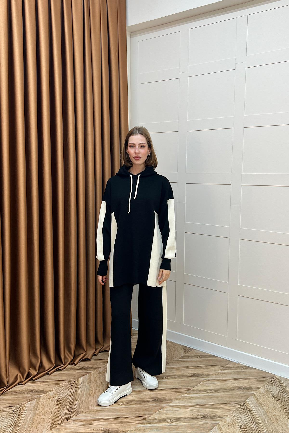 Lapis Çizgili Kapüşonlu Spor Takım, günlük yaşamınızda hem rahatlık hem de şıklık arayanlar için tasarlandı. Triko kumaşın esnek yapısı hareket özgürlüğü sağlarken, modern kesimi ile gün boyu konfor sunar. Spor aktivitelerinden günlük sosyal yaşama kadar geniş bir kullanım yelpazesine uygun olan bu takım, minimal çizgileriyle gardırobunuzun vazgeçilmez parçası olacak.