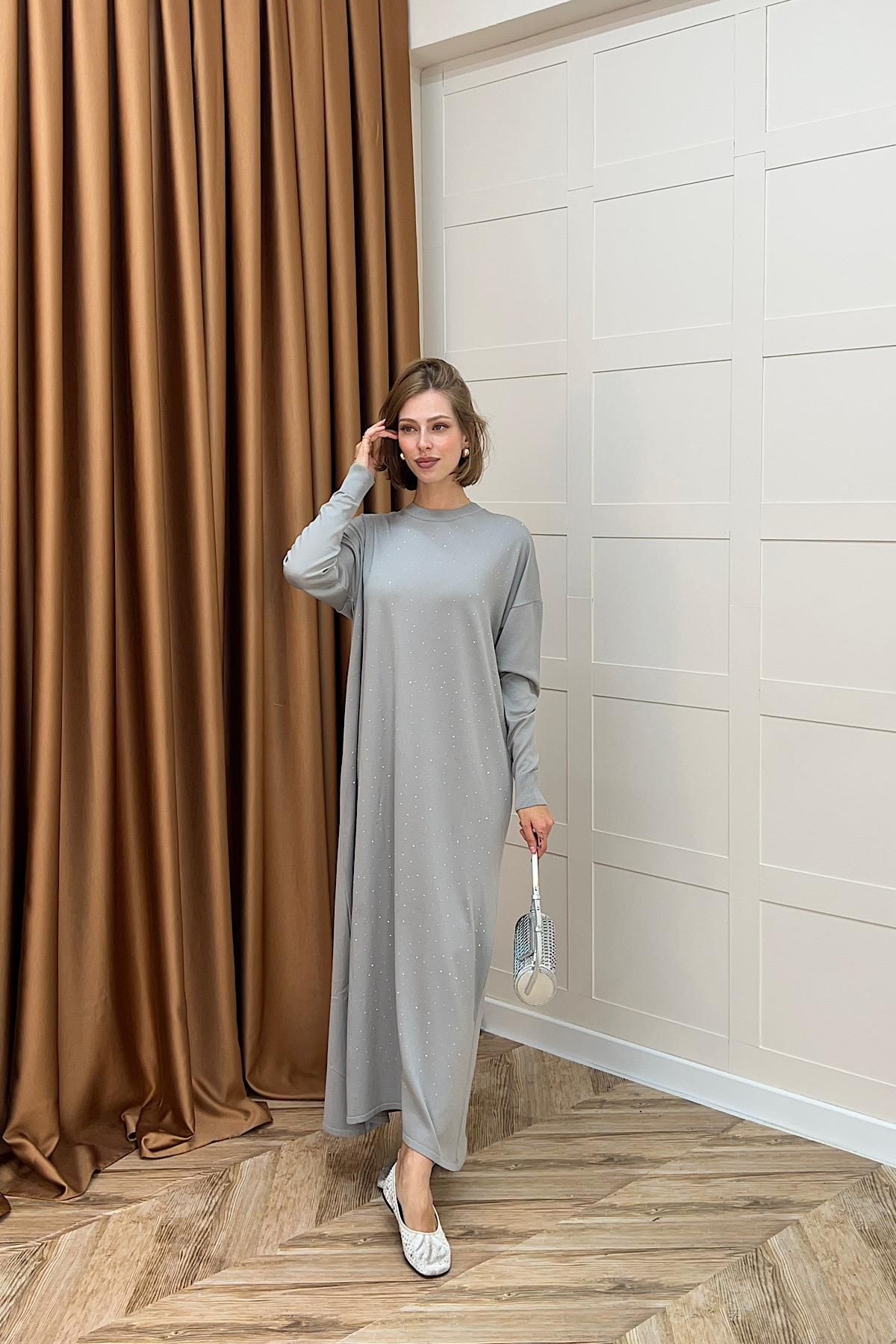 Mabel Taşlı Triko Elbise Gri (25270-GRI)