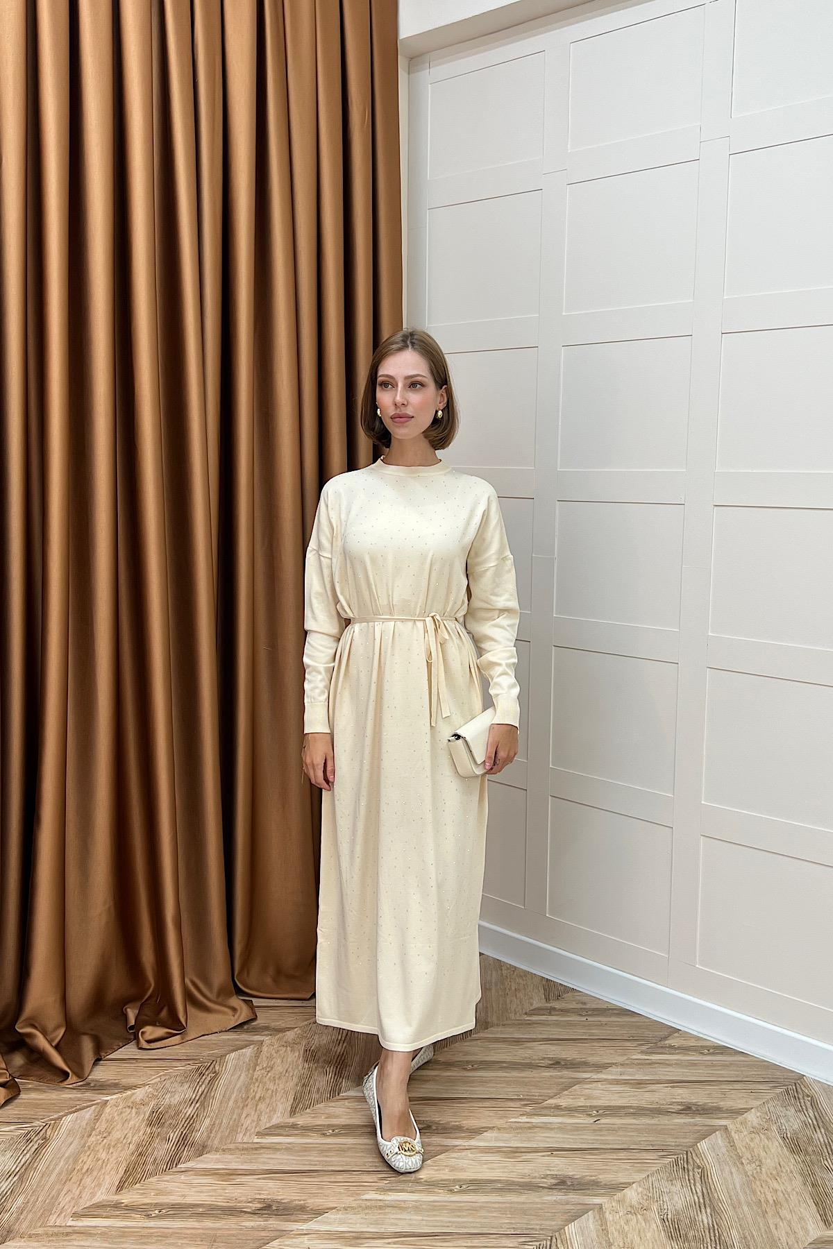 Mabel Taşlı Triko Elbise Krem (25270-KREM)