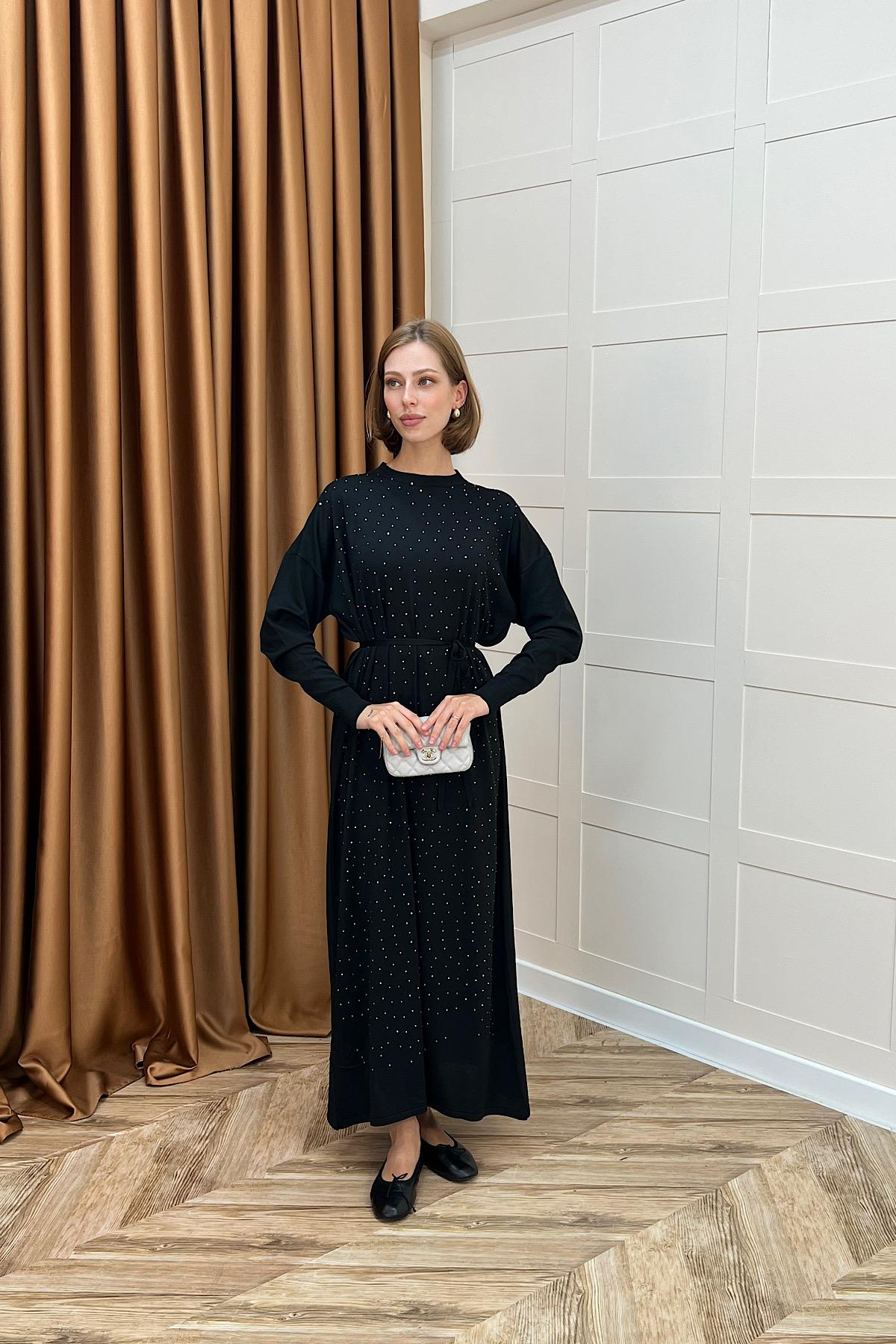 Mabel Taşlı Triko Elbise Siyah (25270-SIYAH)