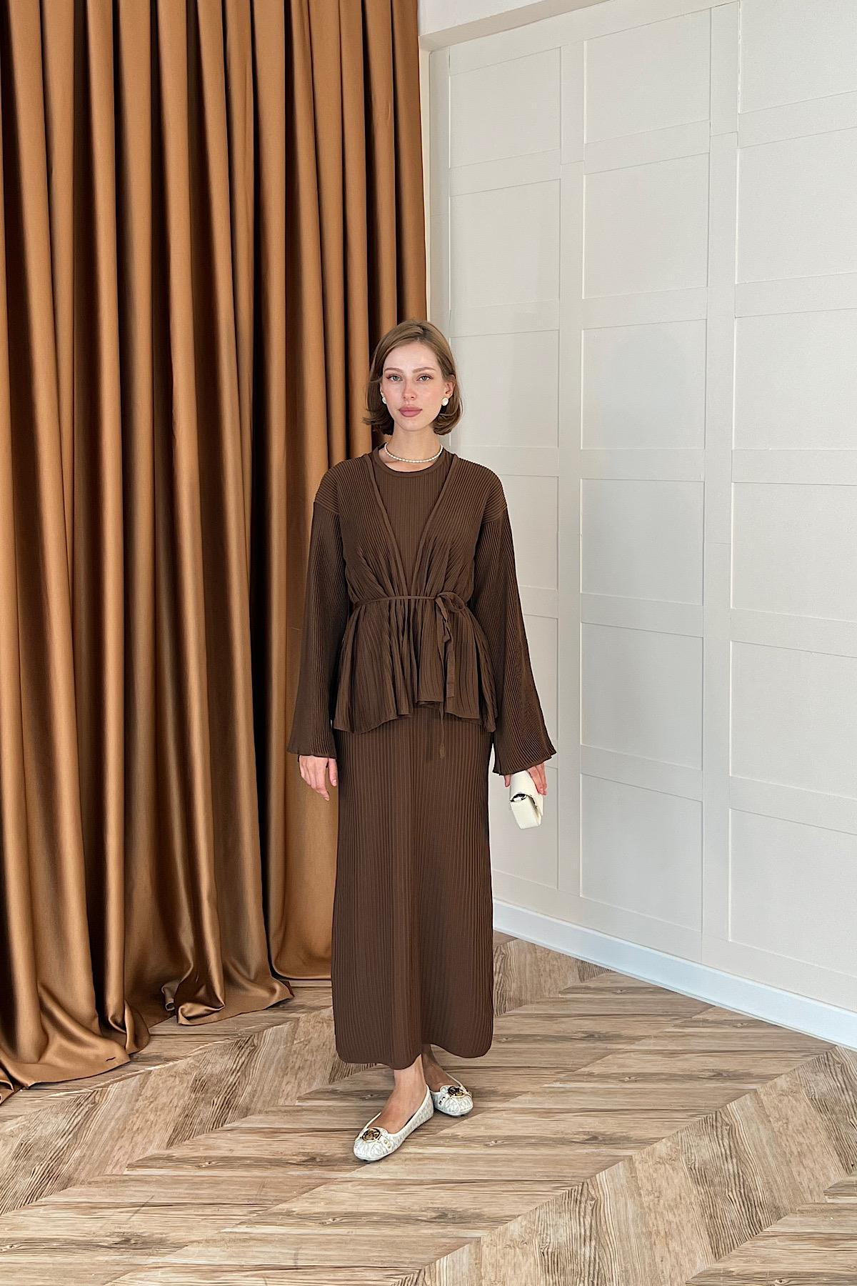 Medusa Jileli Triko Elbise Kahverengi (25370-KAHVERENGI)