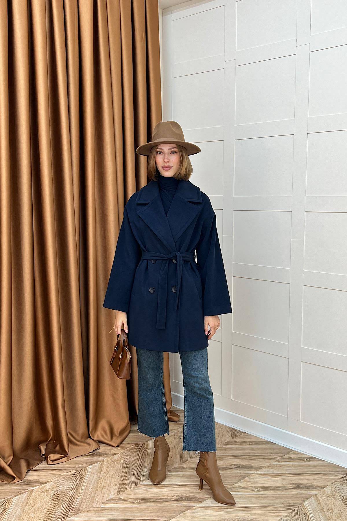 Nuve Premium Kuşaklı Kaban Lacivert (5514-LACIVERT)