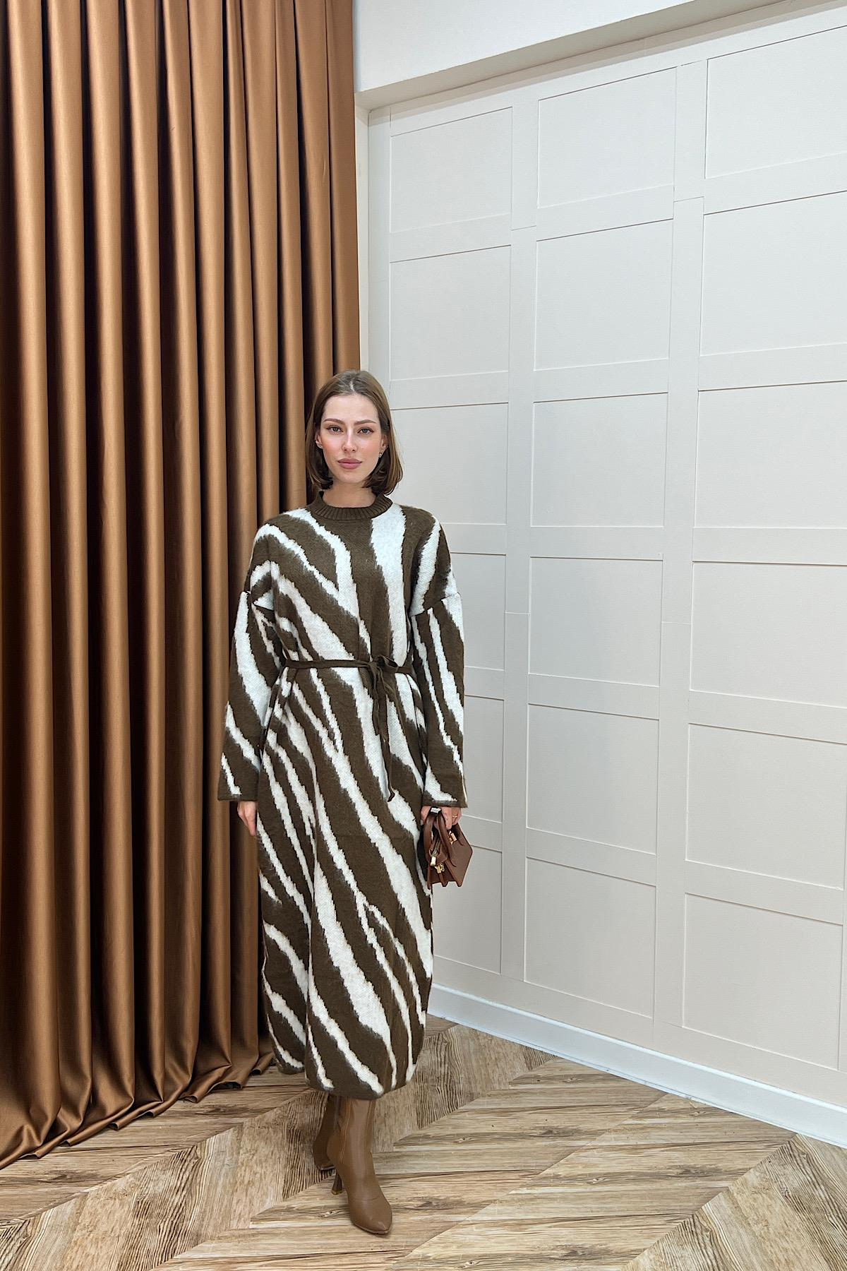Pars Zebra Desen Triko Elbise Kahverengi (25330-KAHVERENGI)