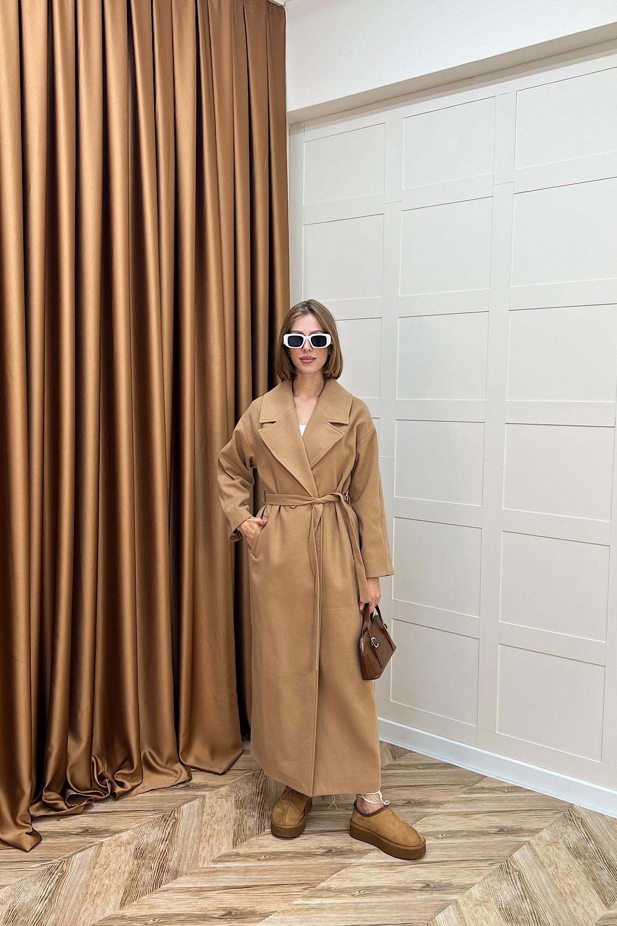 Retro Premium Kumaş Uzun Kaşe Kaban Camel (5509-CAMEL)
