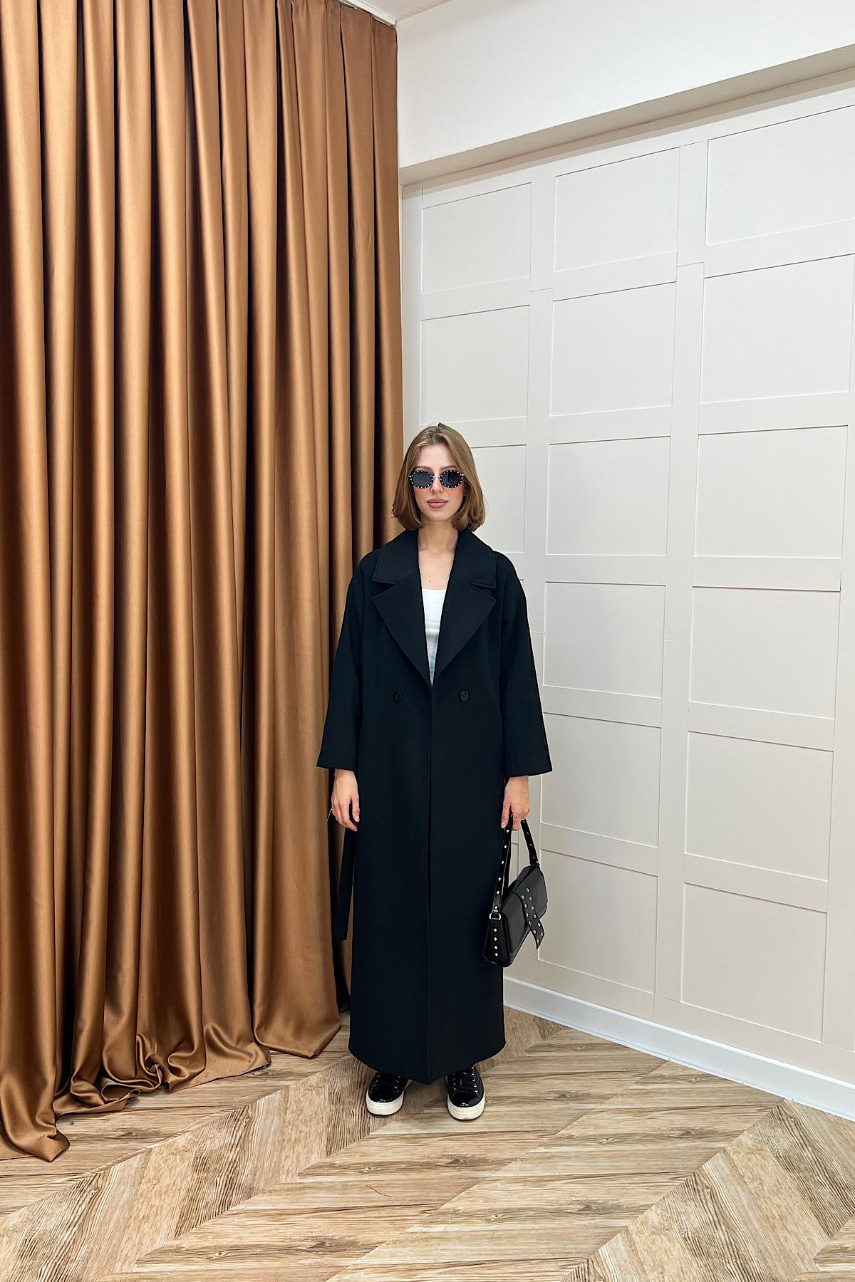 Retro Premium Kumaş Uzun Kaşe Kaban Siyah (5509-SIYAH)