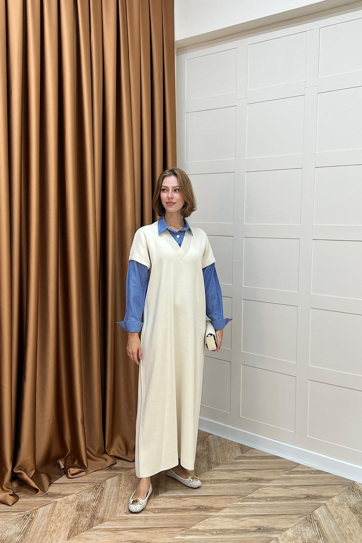 Samira Gömlek Detaylı Triko Elbise Krem (241110-KREM)