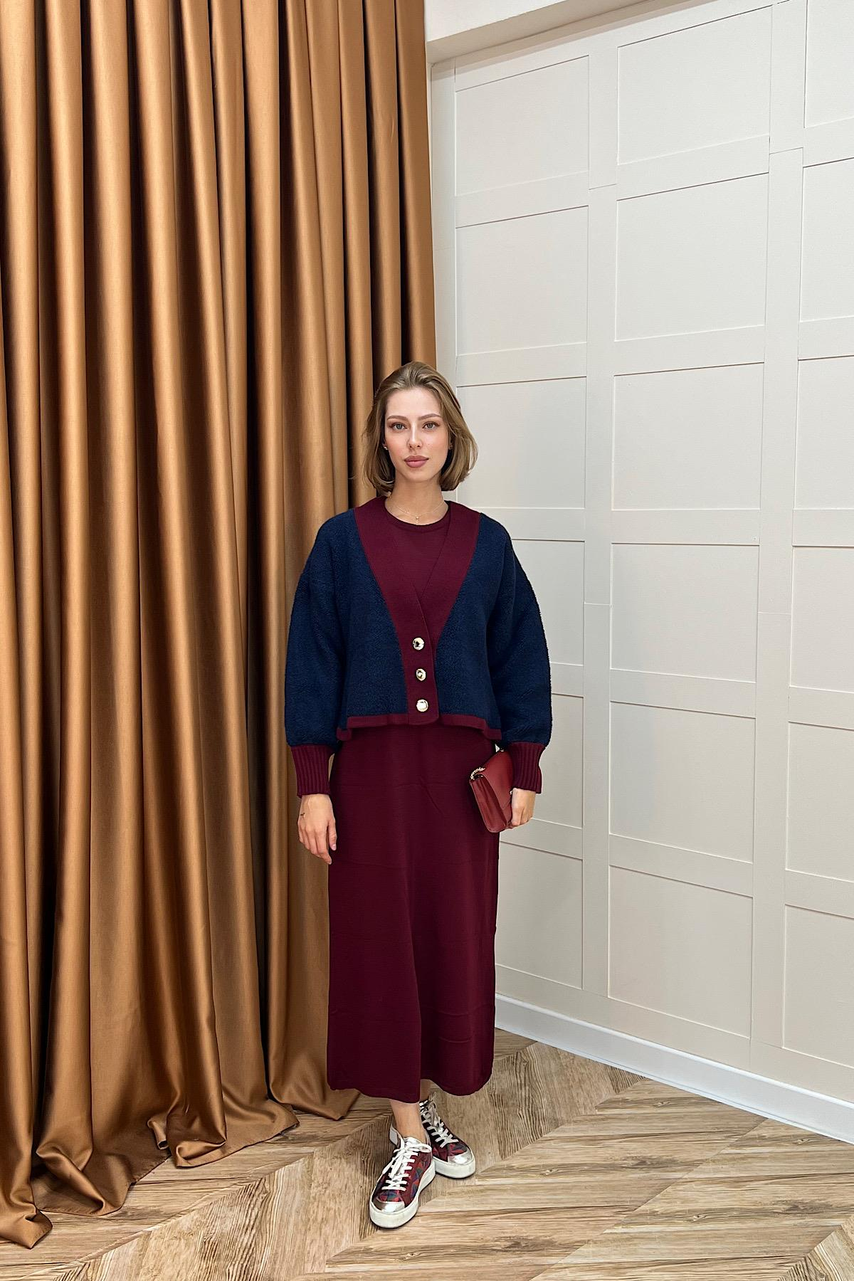 Sezen İkili Triko Elbise Bordo (241090-BORDO)