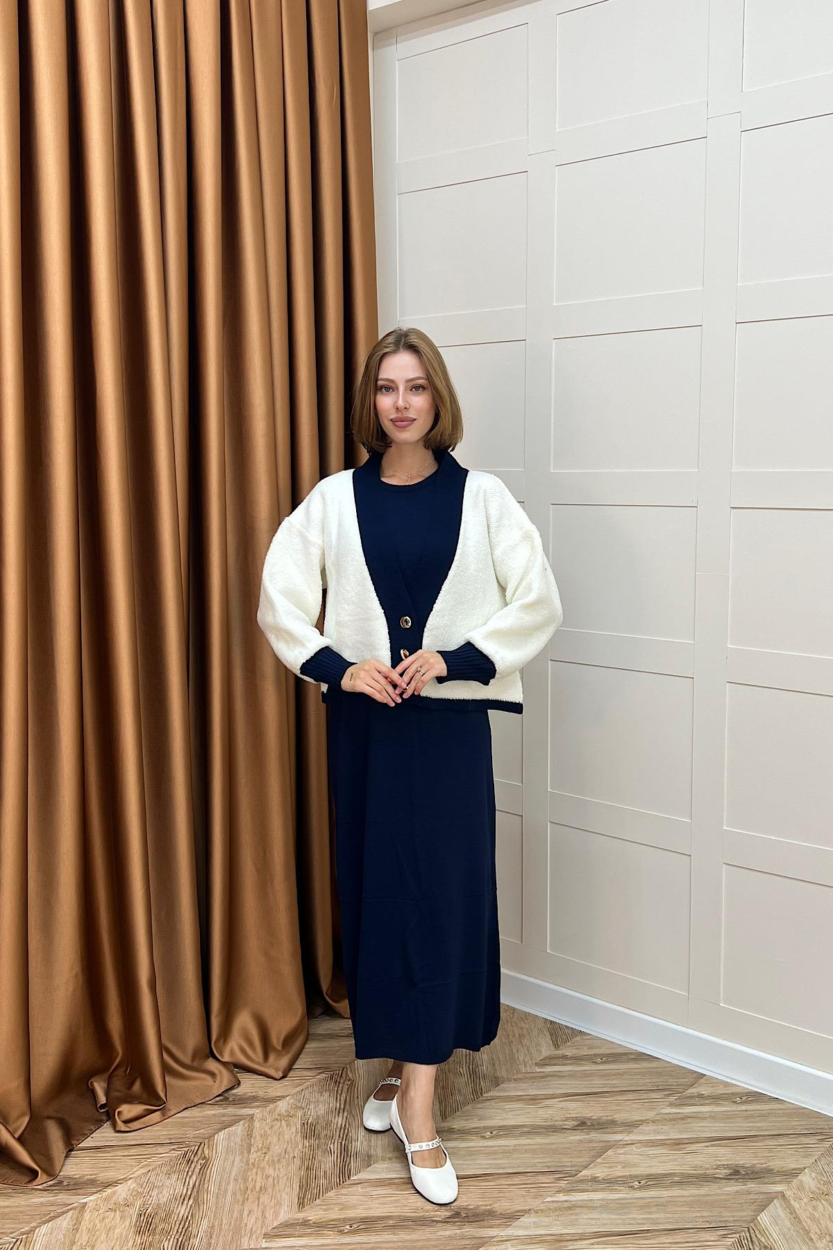Sezen İkili Triko Elbise Lacivert (241090-LACIVERT)