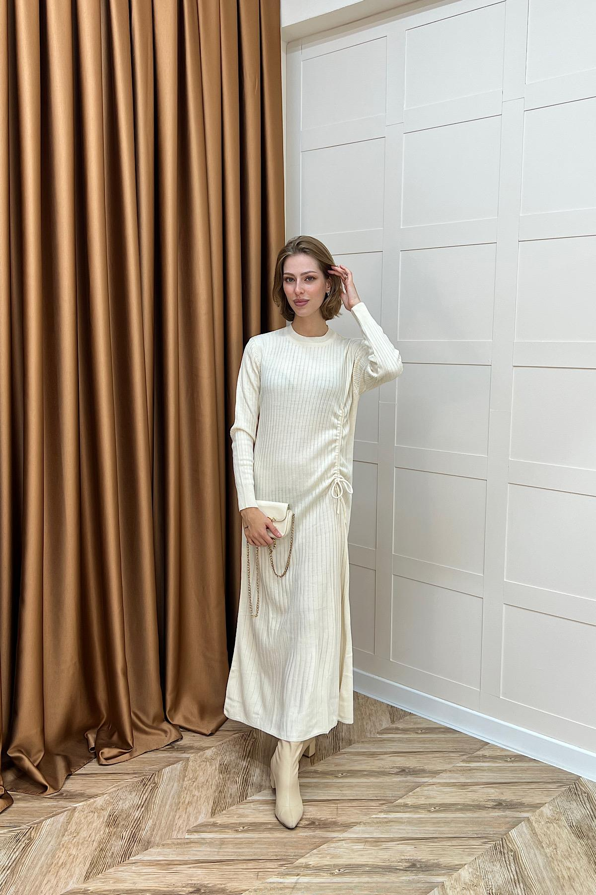 Yandan Büzgülü Triko Elbise Ekru (24870-EKRU)