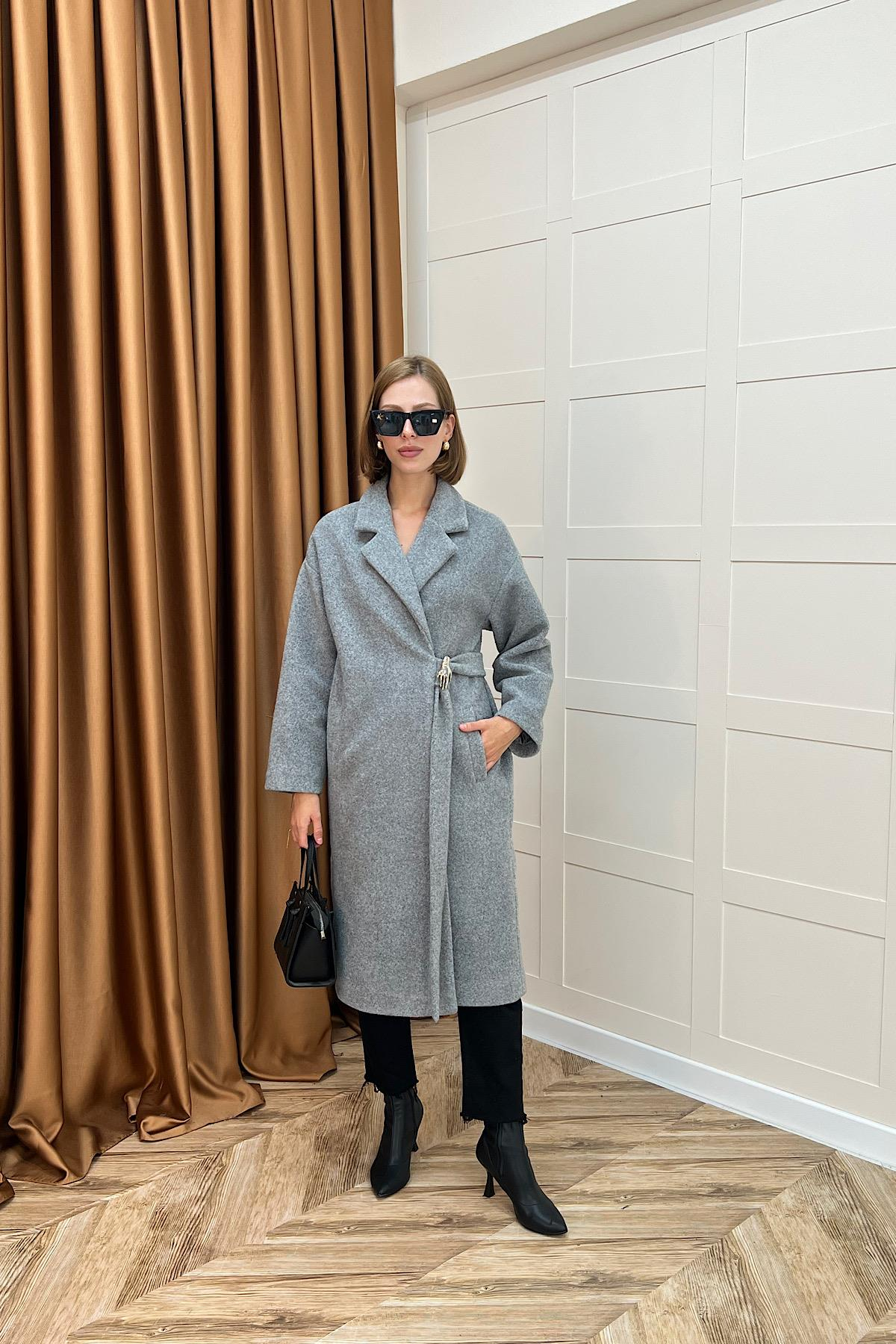 Yaren Premium Kumaş Broş Detay Kaban Gri