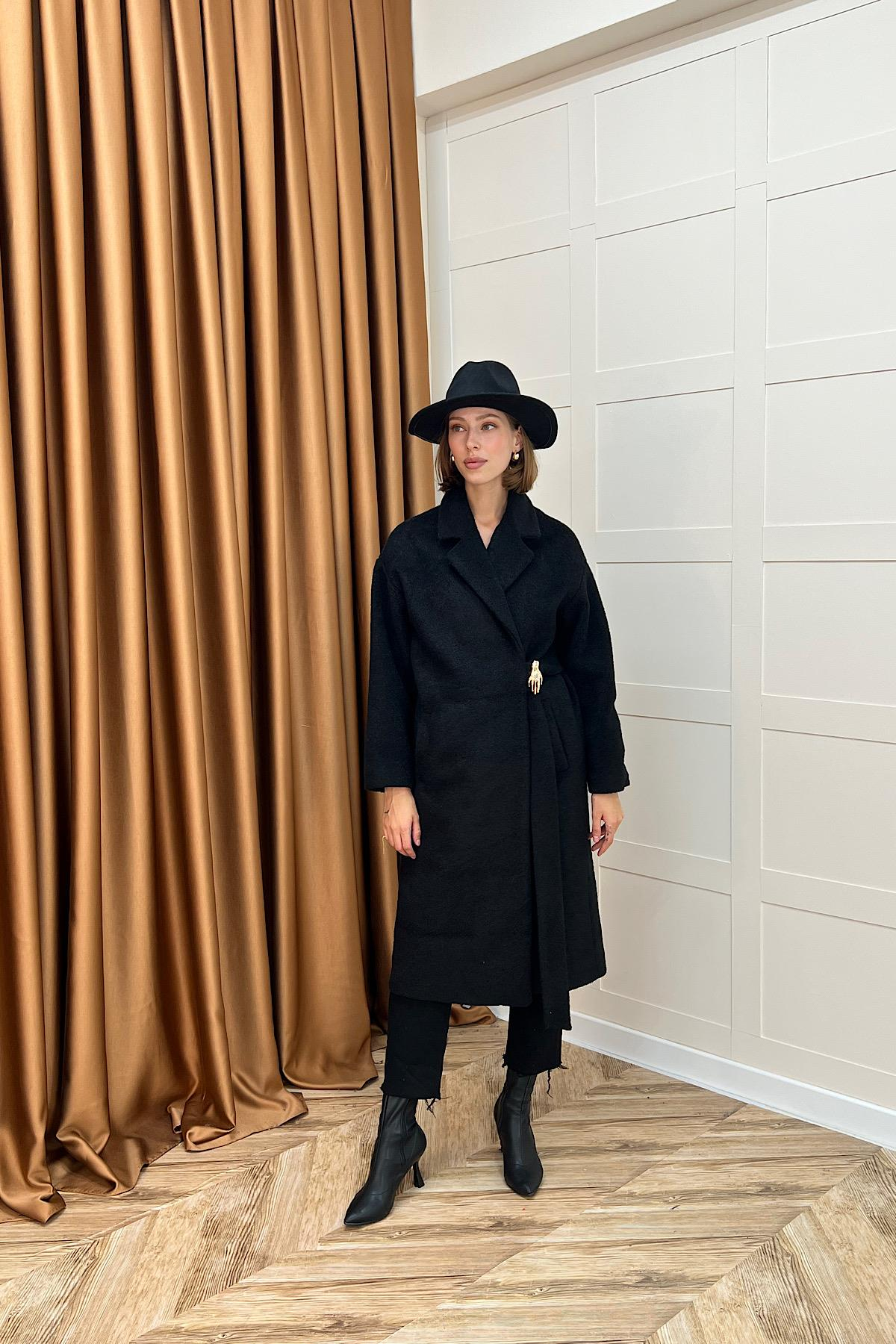 Yaren Premium Kumaş Broş Detay Kaban Siyah (5511-SIYAH)