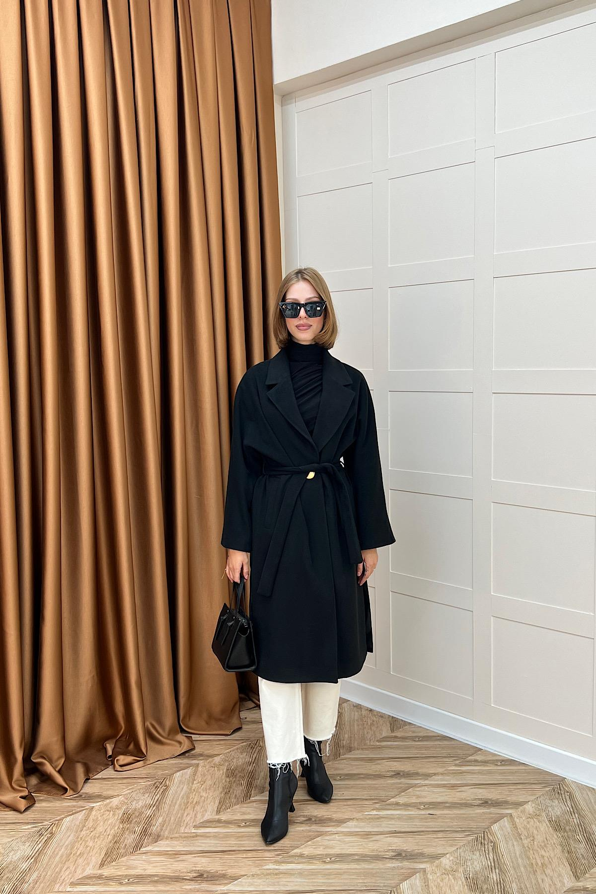 Yıldız Premium Kumaş Kuşaklı Kaban Siyah (5515-SIYAH)