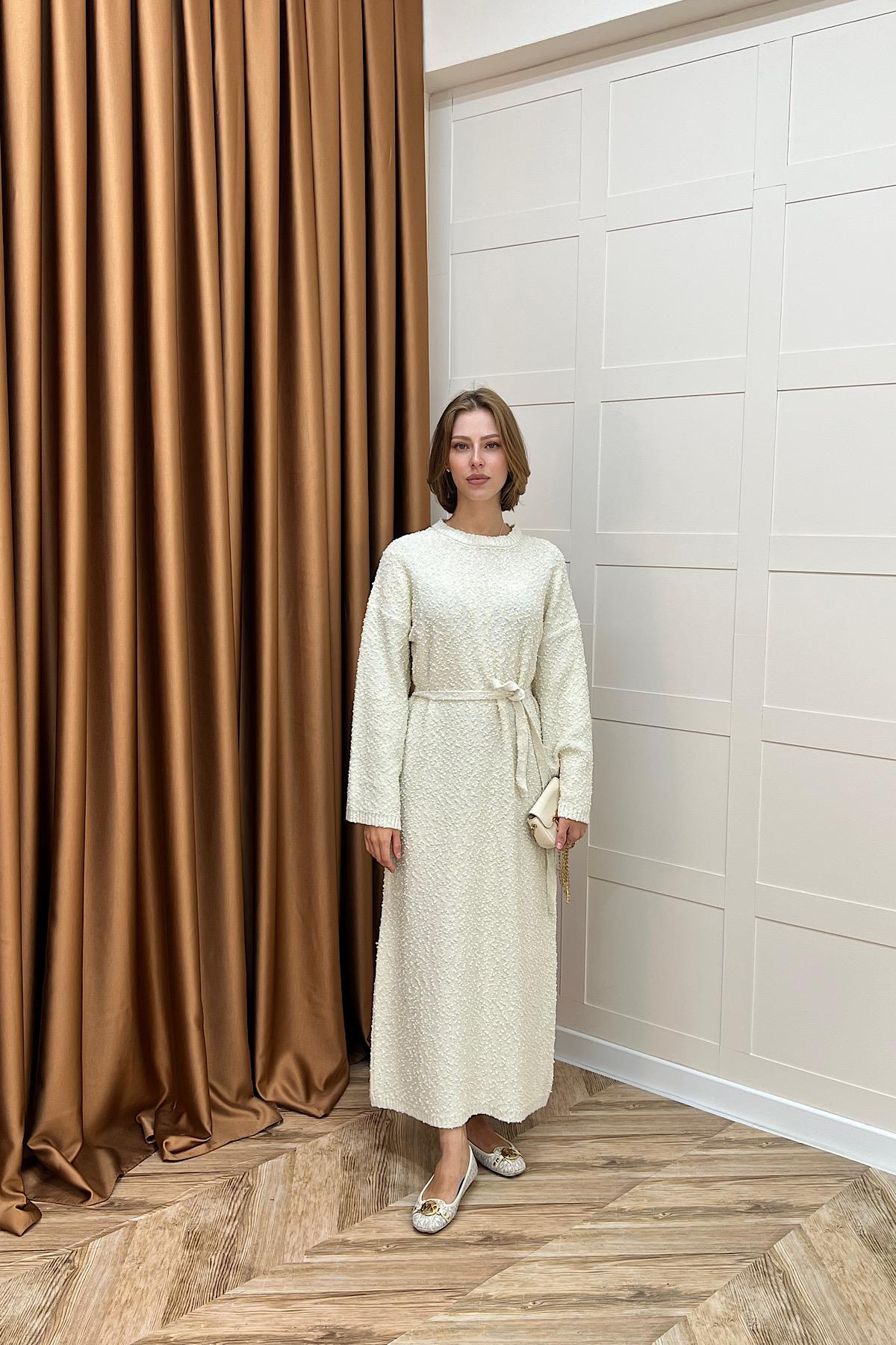 Yumoş Sim Karışımlı Salaş Triko Elbise Krem (252500-KREM)